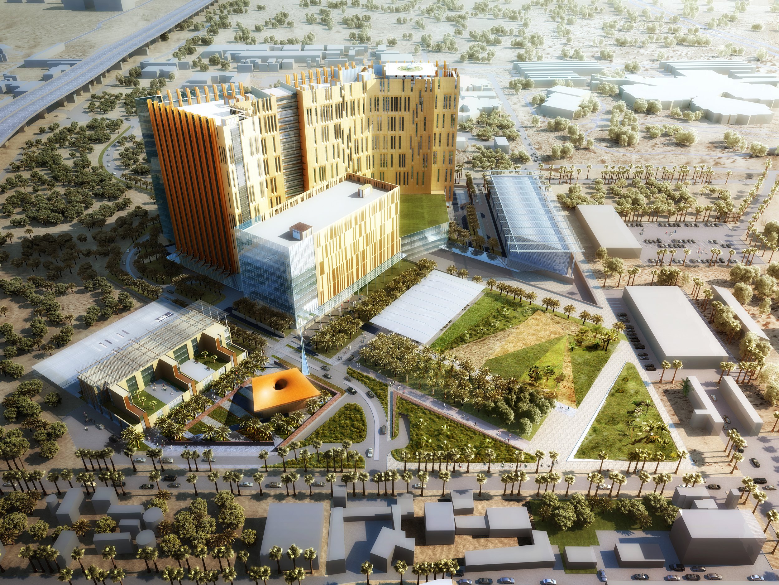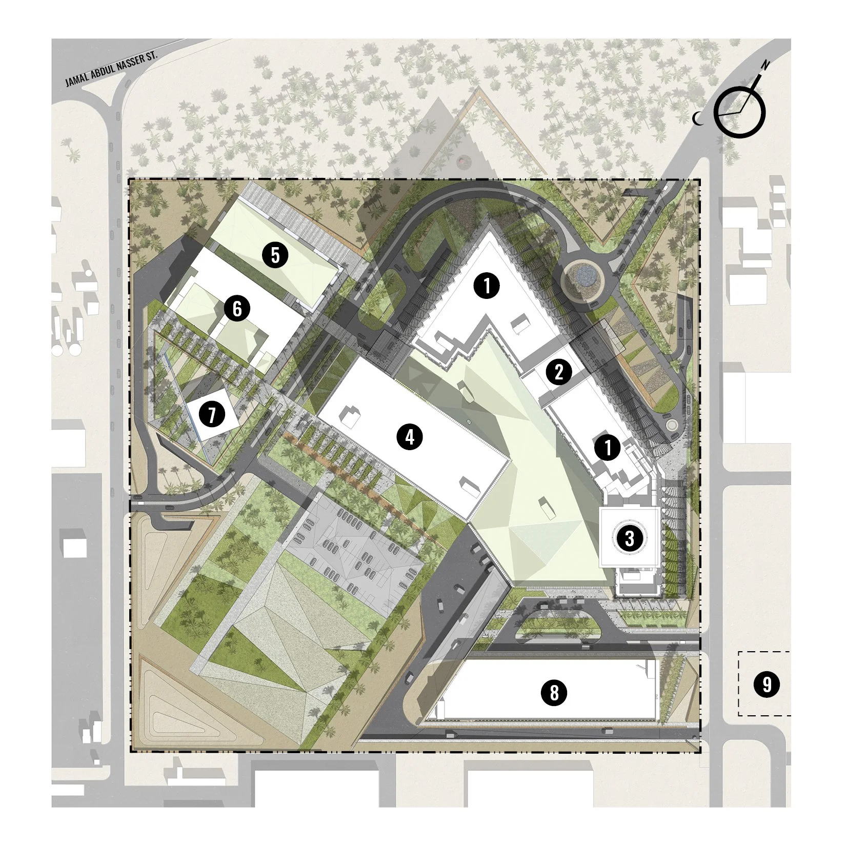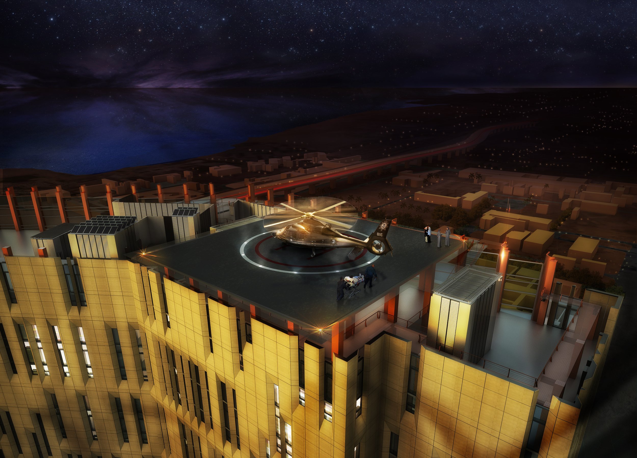 There will be two annex buildings; the first will include a 300 seat auditorium, conference facilities, 2 class C4 shelters, and housing for family members and visiting physicians, and the second Annex Building will be a 120,000 m2 underground parking facility. Other associated buildings include a mosque, ambulance complex, medical waste unit and ancillary structures for electromechanical services.