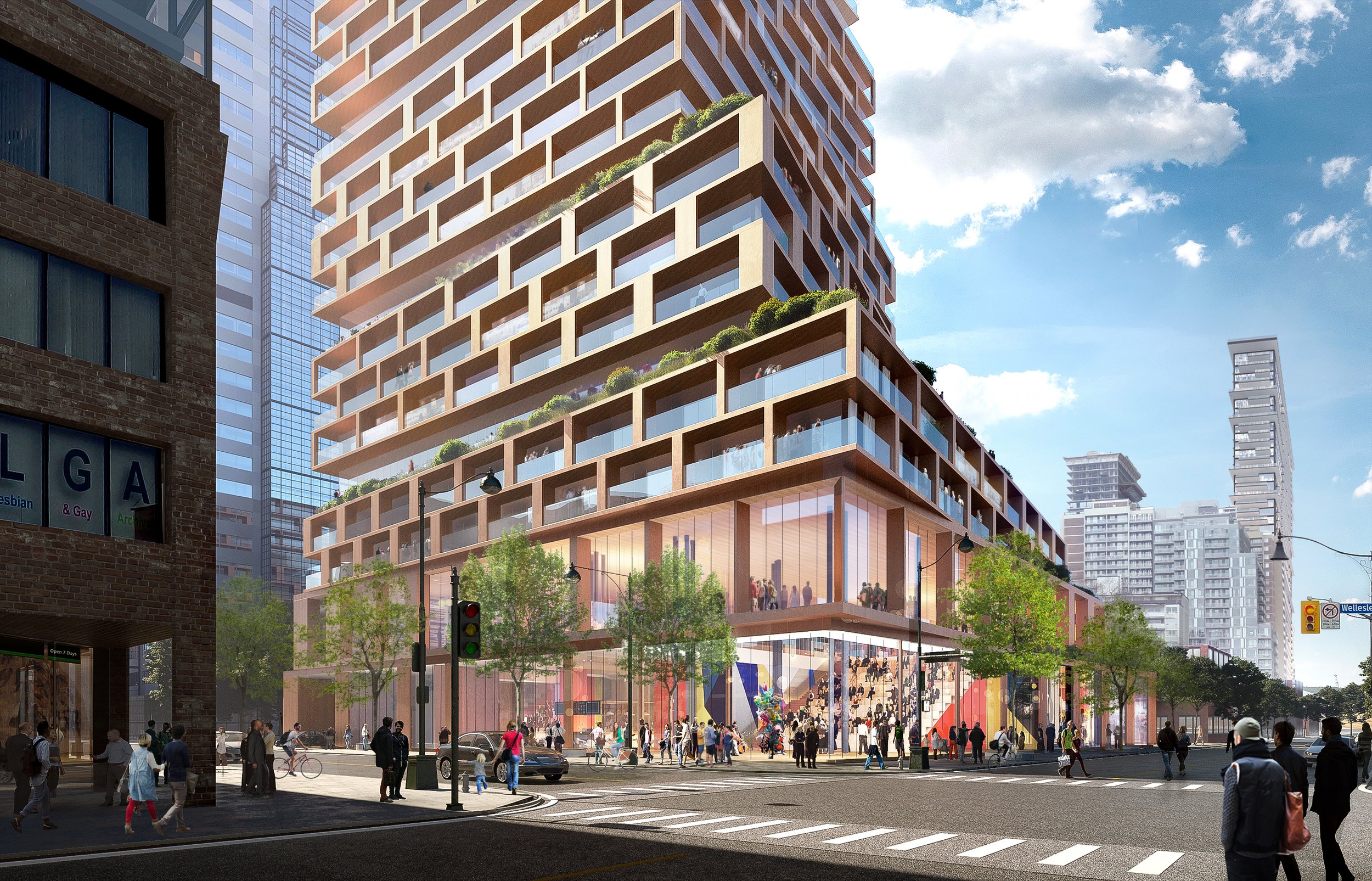 “In designing ‘Church and Wellesley’, we have taken a bottom-up approach to design a high-rise, starting out with determining the podium and how that space could give back to the city. The corner of Church and Wellesley is a central public space of the neighborhood, and the building has to recognize, embrace, and celebrate that.